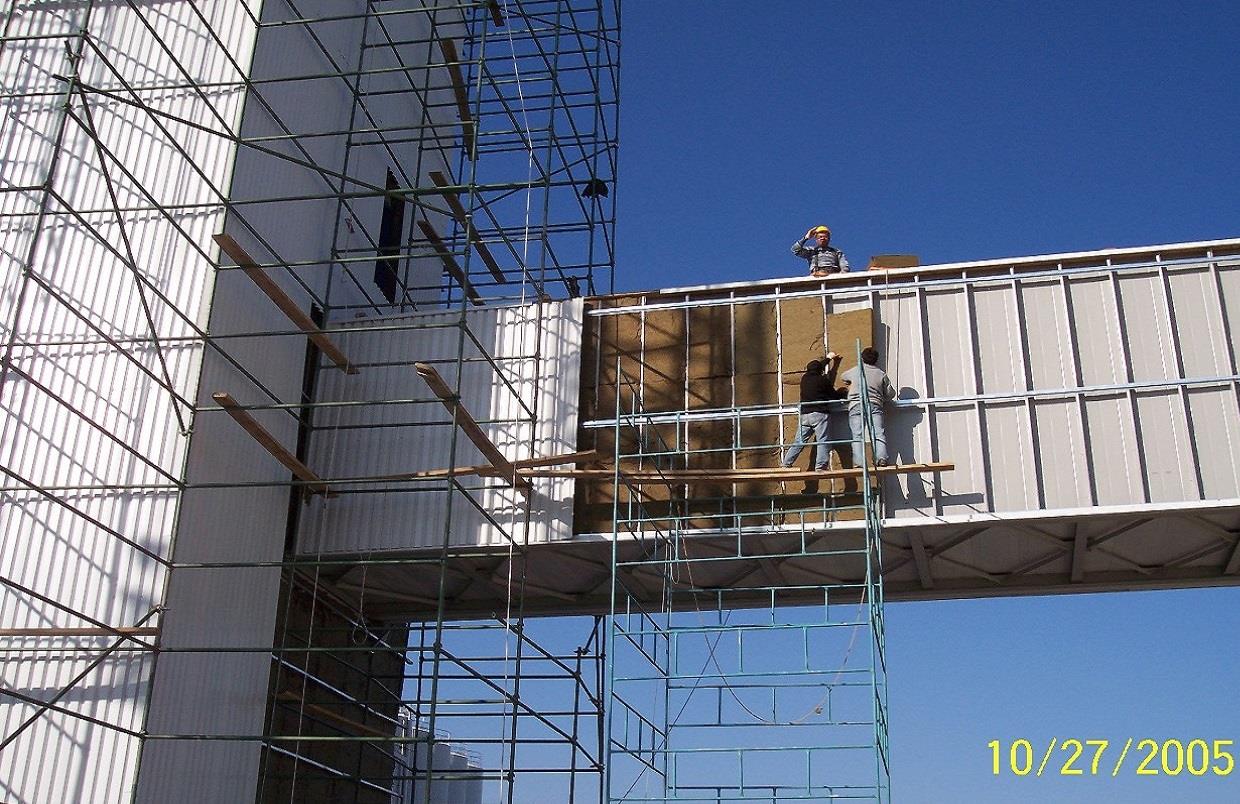 ısı izolasyon üzerine boyalı sactan üretilmiş trapez panellerle cephe
