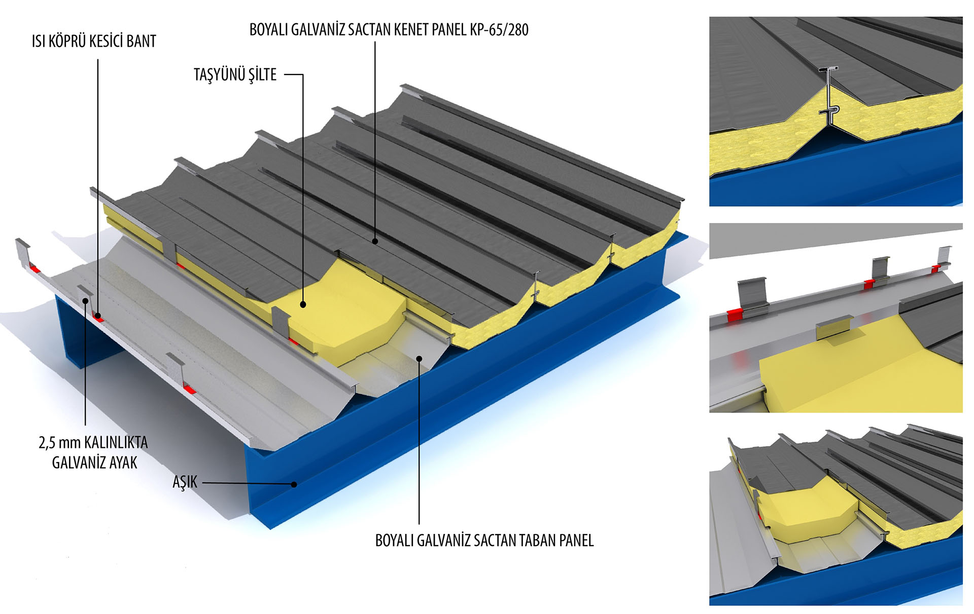 0.54 mm sac, alt yük taşıyıcı panelin 0.64 mm sac olması esasına göredir. Üst panel malzeme